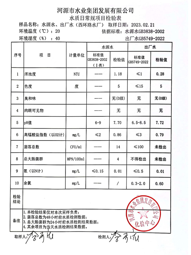 2023年2月21日水質(zhì)檢驗(yàn)報(bào)告