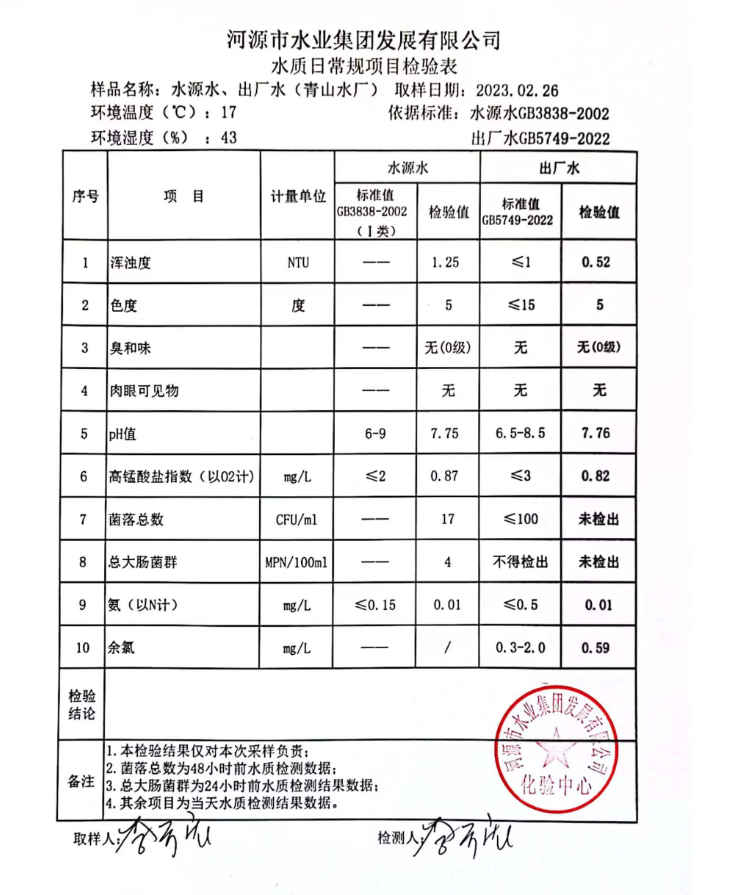 2023年2月26日水質(zhì)檢驗(yàn)報(bào)告