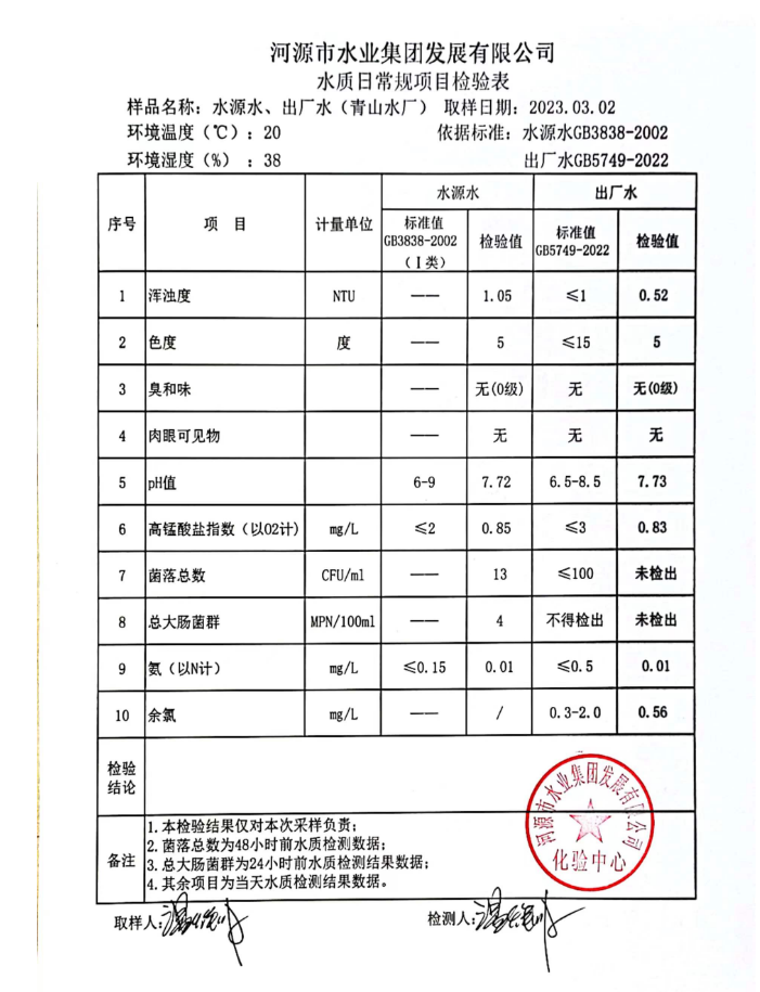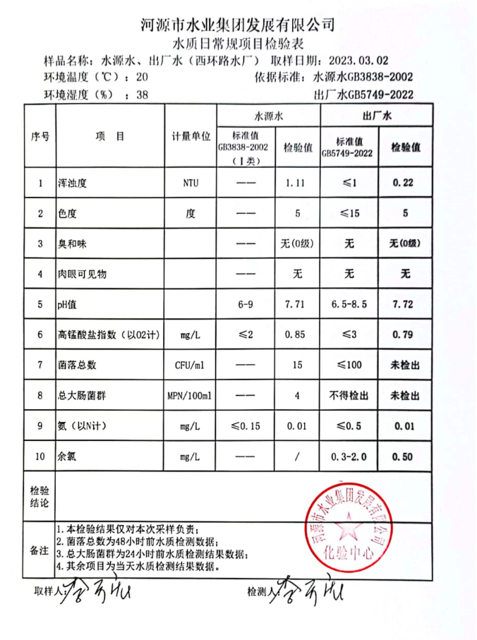 2023年3月2日水質(zhì)檢驗報告