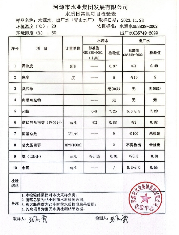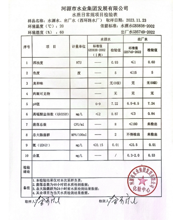 2023年11月23日水質(zhì)檢驗(yàn)報(bào)告 ???
