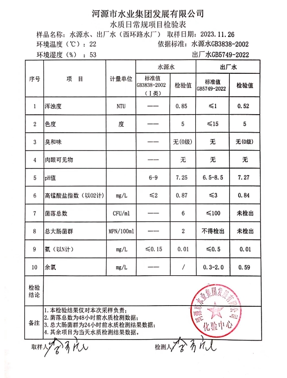 2023年11月26日水質(zhì)檢驗(yàn)報(bào)告 ???