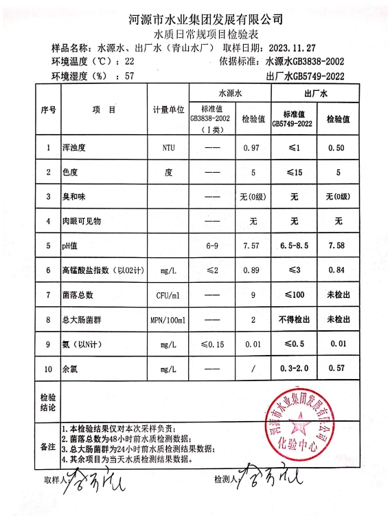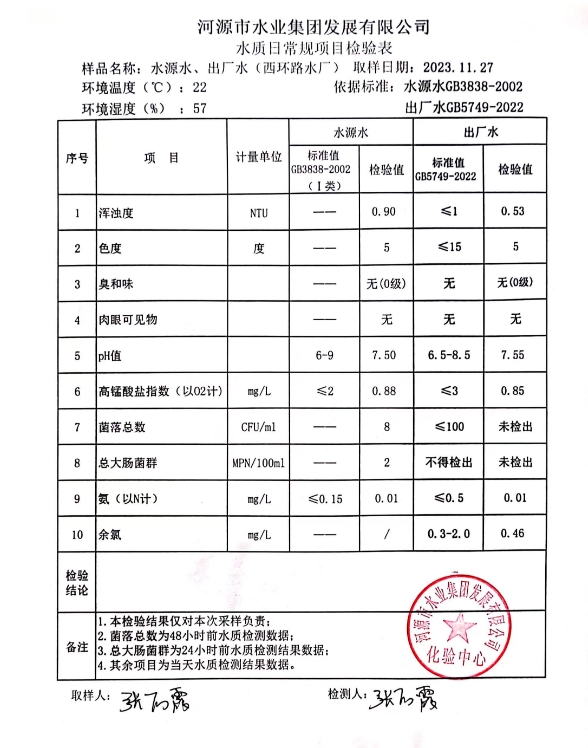 2023年11月27日水質(zhì)檢驗(yàn)報告 ???