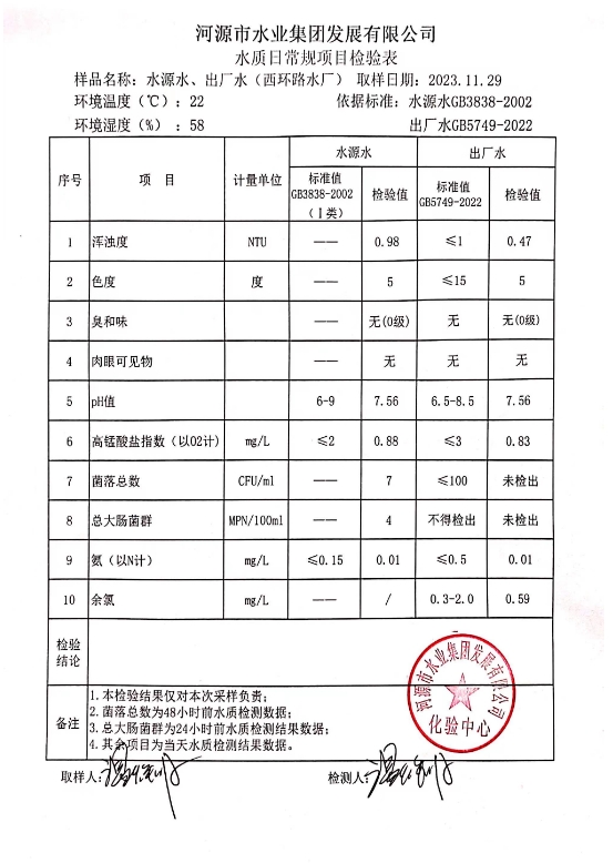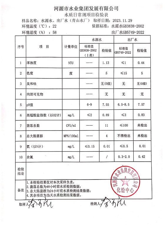 2023年11月29日水質(zhì)檢驗(yàn)報(bào)告 ???