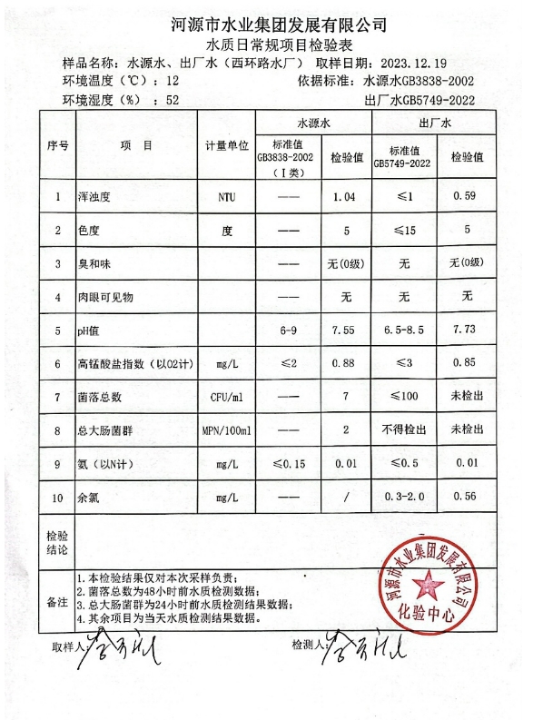 2023年12月19日水質(zhì)檢驗(yàn)報(bào)告 ???