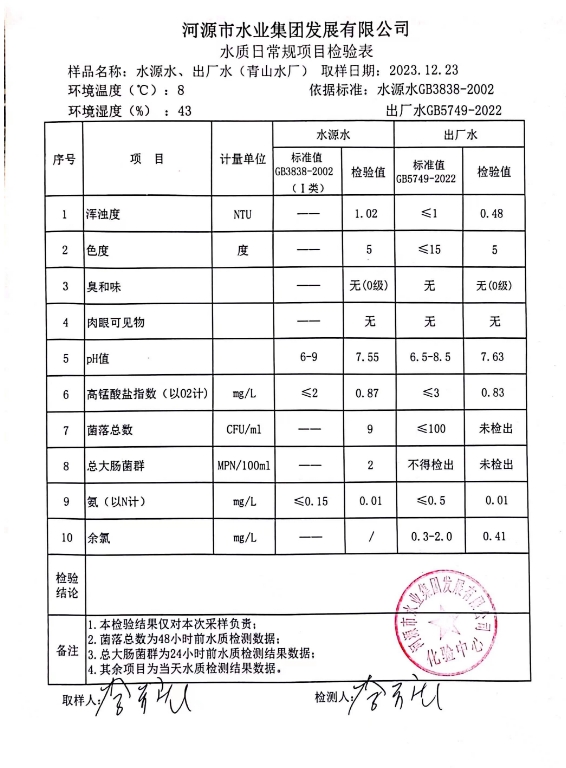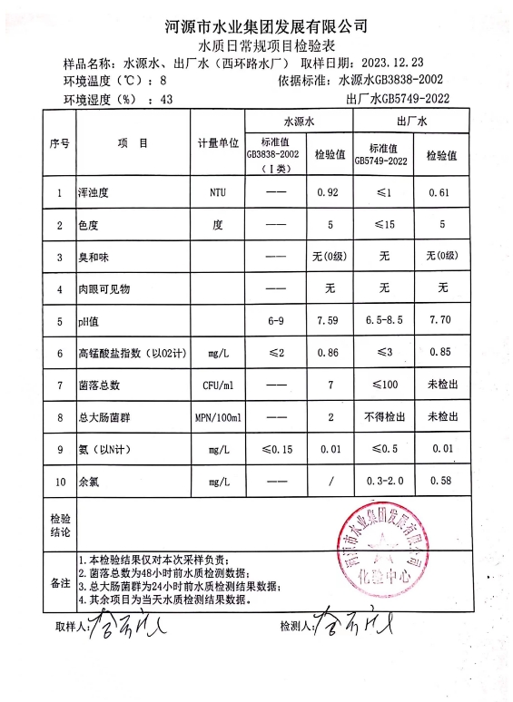 2023年12月23日水質(zhì)檢驗(yàn)報(bào)告