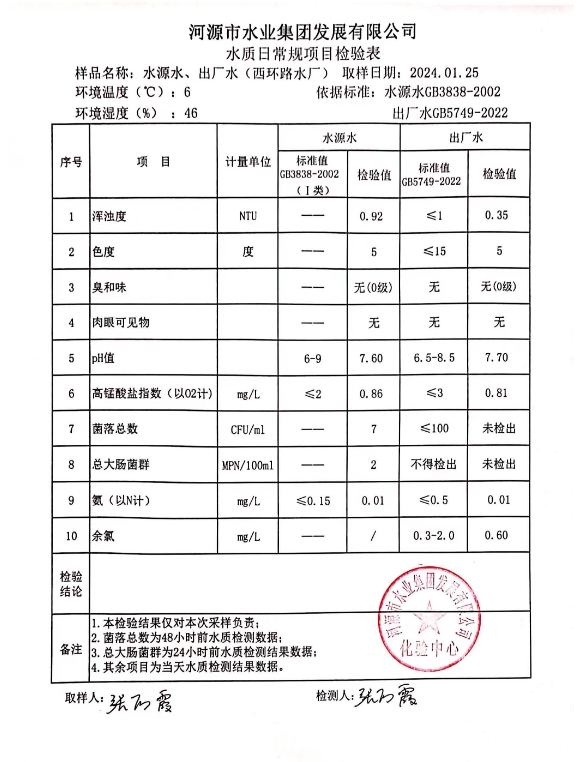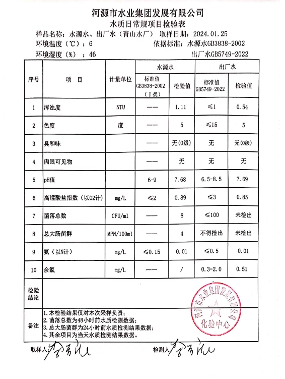 2024年1月25日水質(zhì)檢驗(yàn)報(bào)告 ???