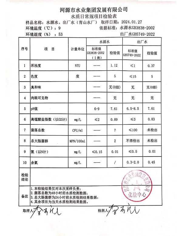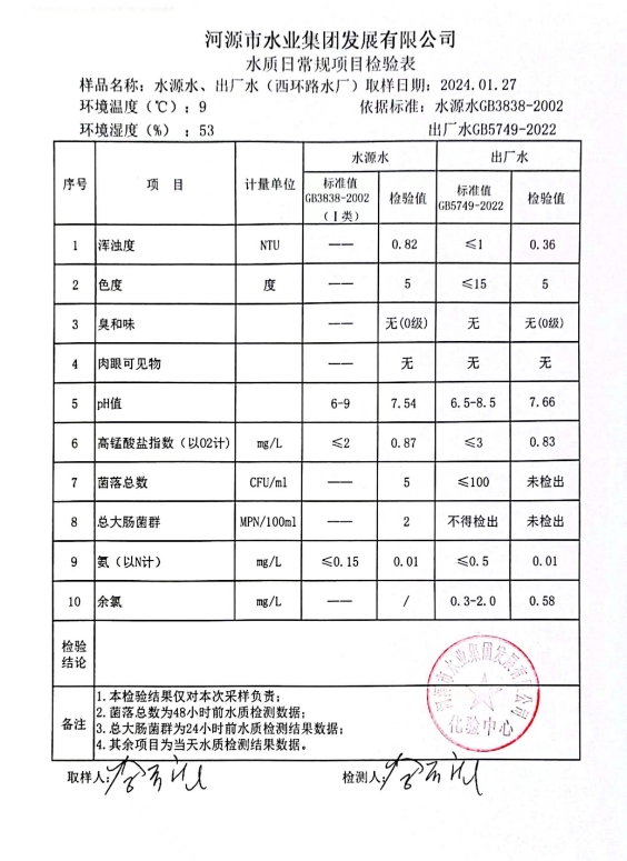 2024年1月27日水質(zhì)檢驗(yàn)報(bào)告 ???