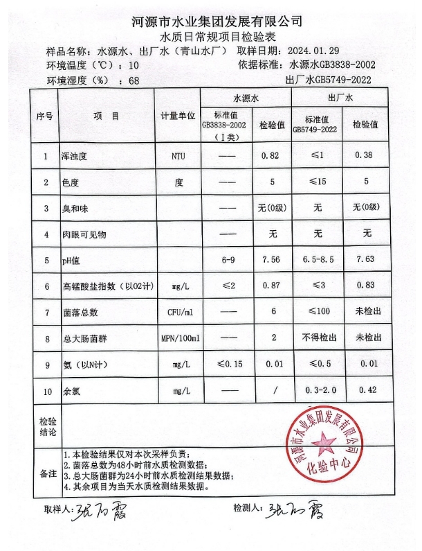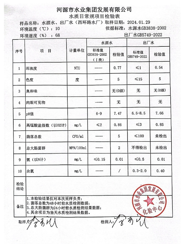 2024年1月29日水質(zhì)檢驗(yàn)報(bào)告 ???