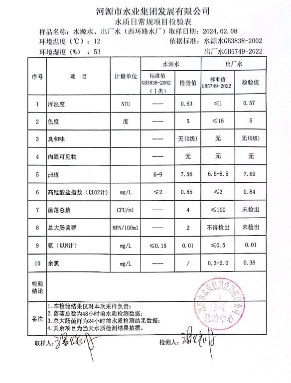 2024年2月8日水質(zhì)檢驗報告 ???