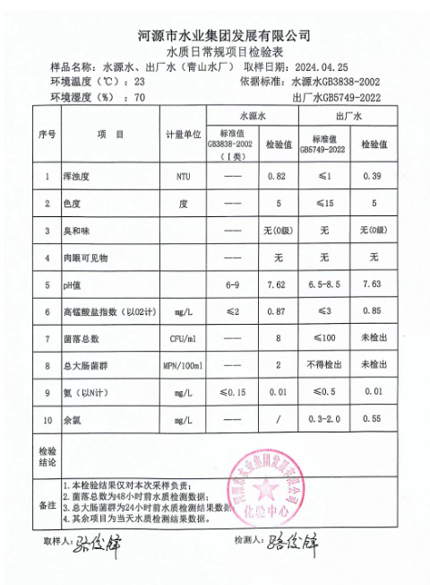 2024年4月25日水質(zhì)檢驗(yàn)報(bào)告 ???