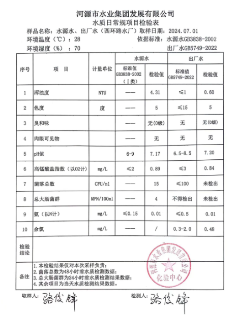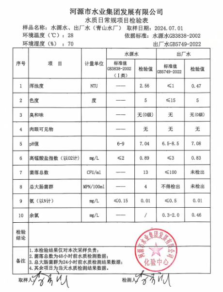 2024年7月1日水質(zhì)檢驗(yàn)報告