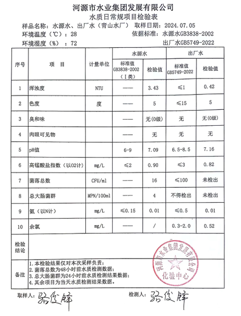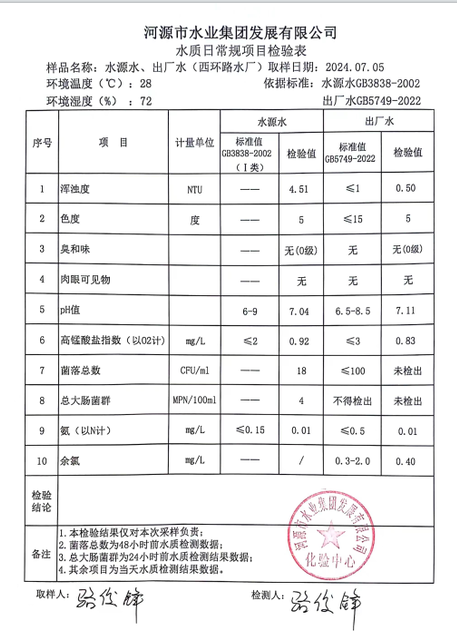 2024年7月5日水質(zhì)檢驗(yàn)報(bào)告