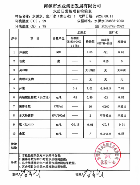 2024年8月11日水質(zhì)檢驗(yàn)報(bào)告