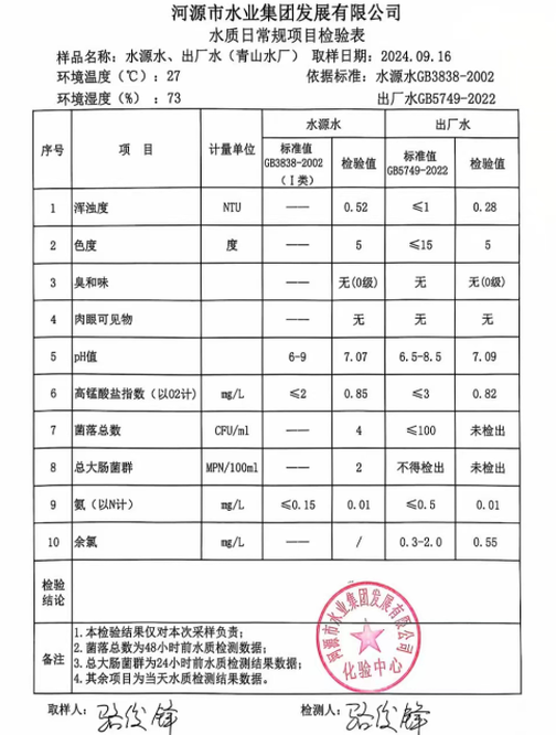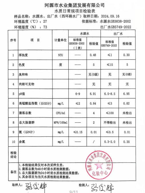 2024年9月16日水質(zhì)檢驗報告