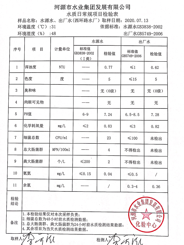 2020年7月13日水質(zhì)檢驗(yàn)報(bào)告