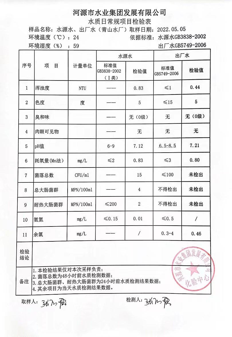 2022年5月5日水質(zhì)檢驗(yàn)報(bào)告 ????