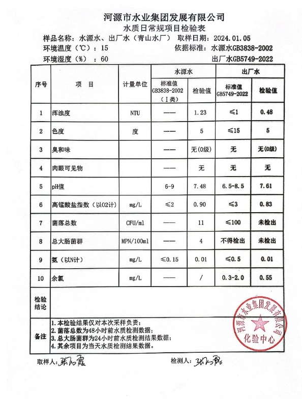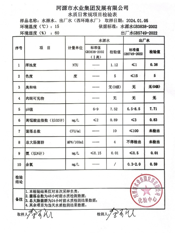 2024年1月5日水質(zhì)檢驗報告 ???
