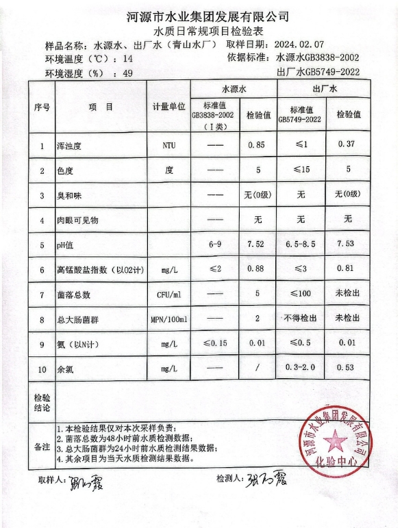 2024年2月7日水質(zhì)檢驗(yàn)報(bào)告 ???