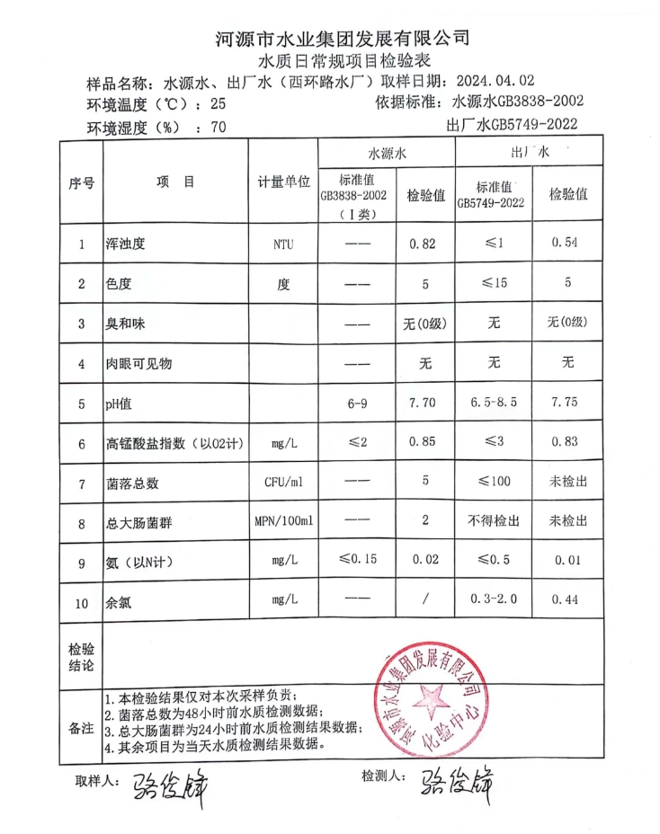 2024年4月2日水質(zhì)檢驗(yàn)報(bào)告
